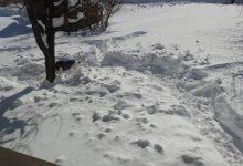 Milo here. This past blizzard/storm has caused me some consternation. Going out to “do my thing” became a challenge right off. I love romping in fresh show, but this snowstorm turned romping into jumping surges, the end of which left me in a hole with snow over my head literally. I couldn’t even lift to pee nor stupe to- you know. Dad came to the rescue with his shovel. He made me some paths to a couple of trees and wide areas to “do my thing”. That helped a lot. Until we got the driveway cleaned, that was the extent of my usable travel area.